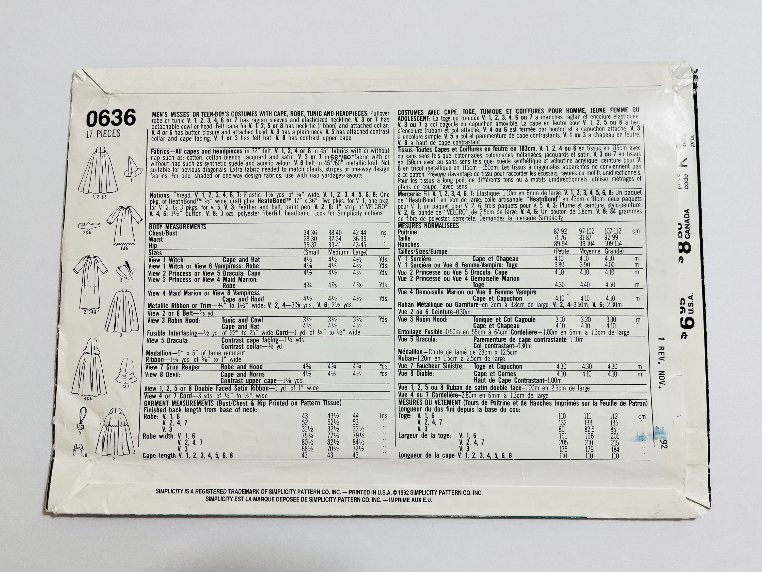 Simplicity 0636 Bust Chest 34 44 Costume Sewing Etsy India